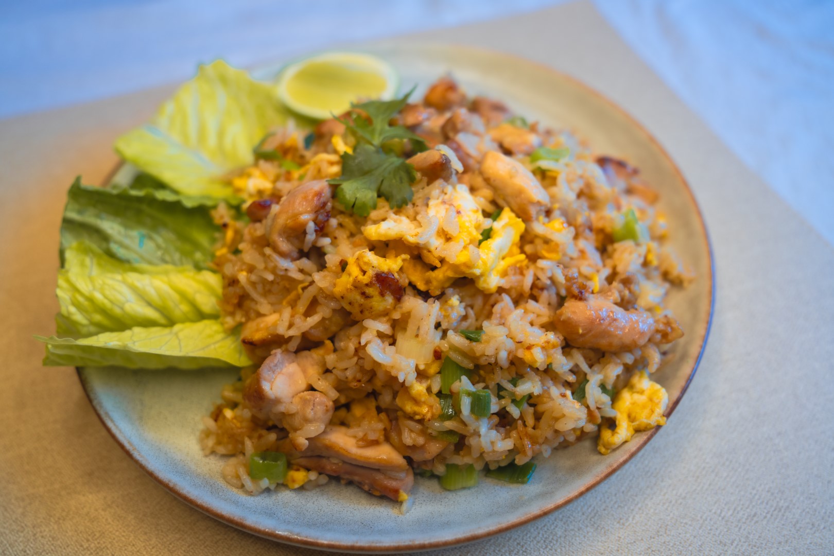 Rice stir fried with eggs, vegetables and choice of meat (shrimp/chicken).