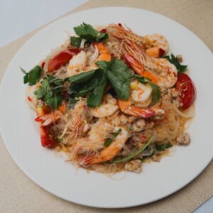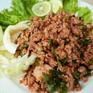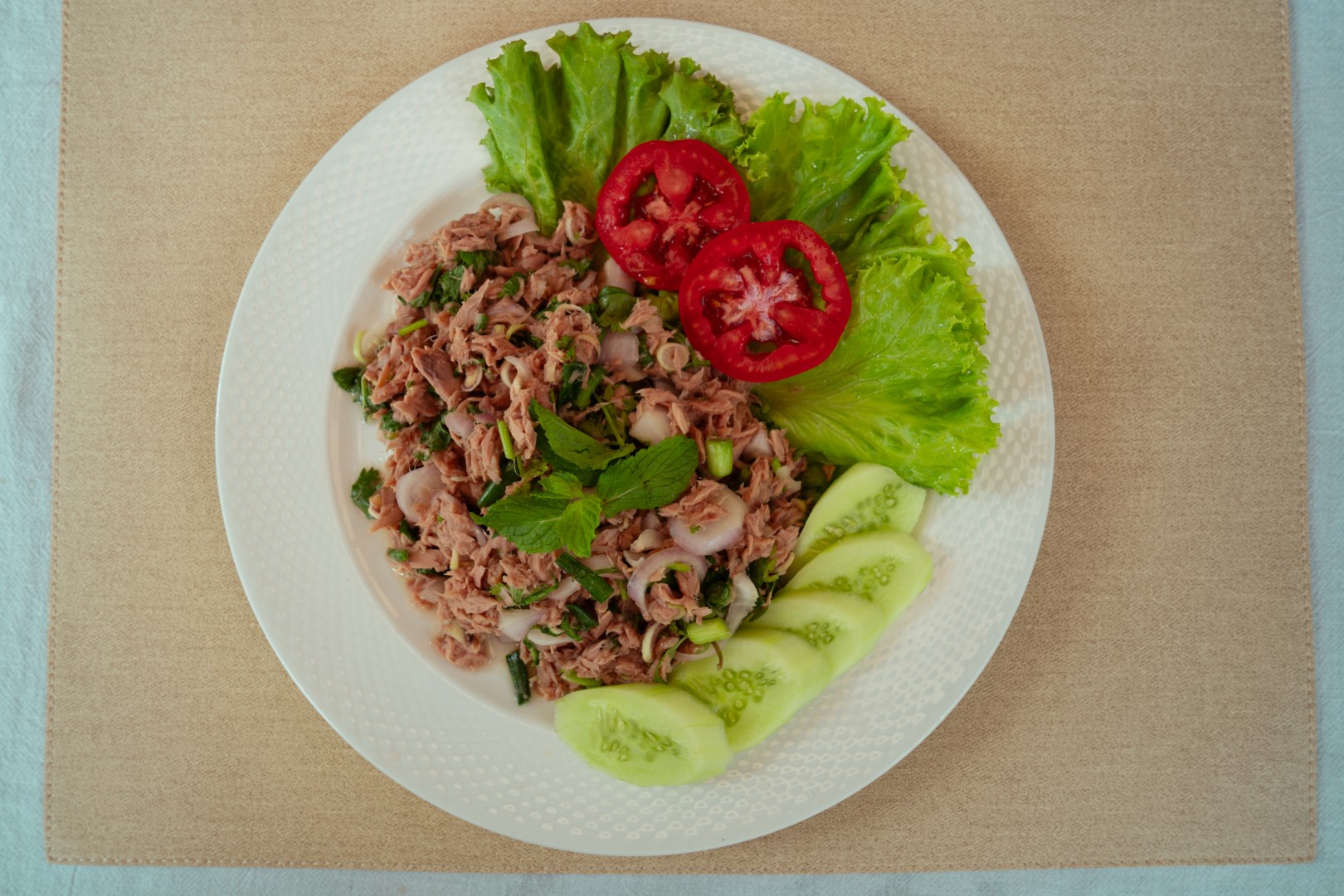 Traditional Thai salad with tuna, shallots, green onion, and peppermint