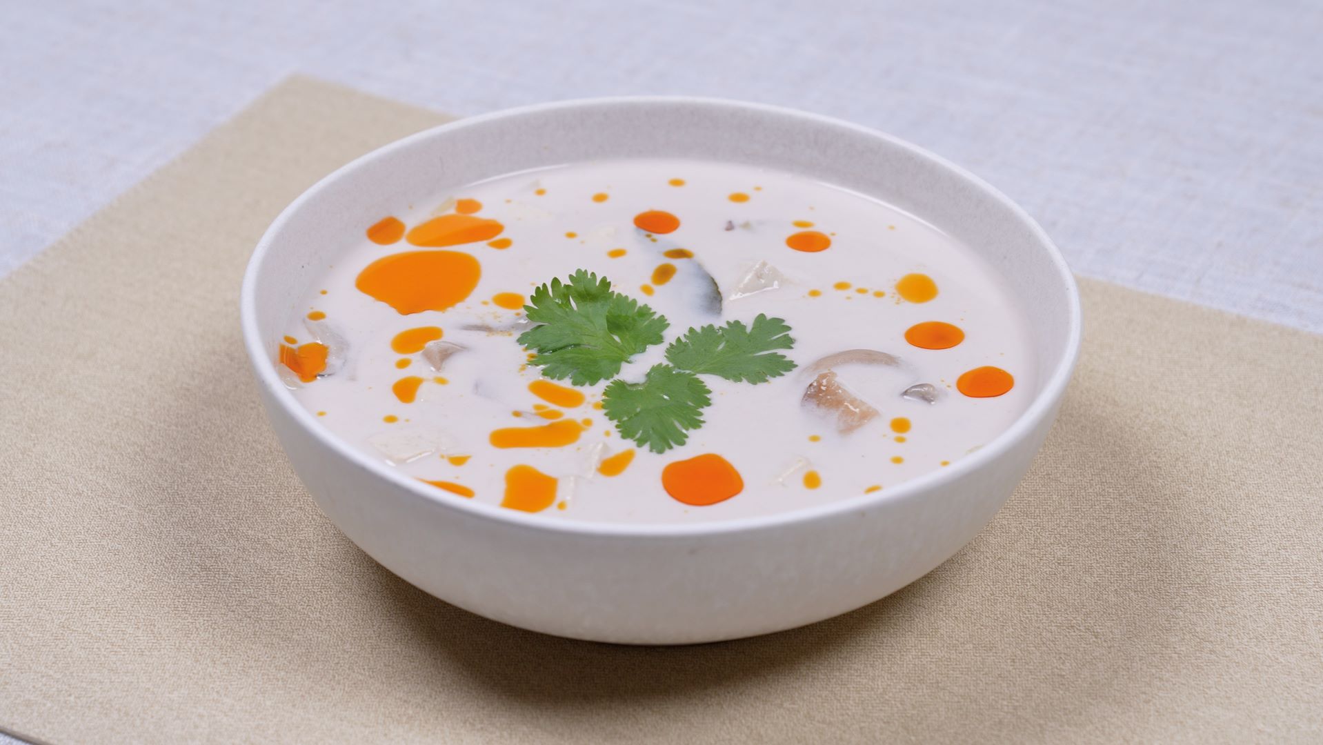 Shrimp/chicken/tofu cooked with Thai herbs, coconut milk and mushrooms.